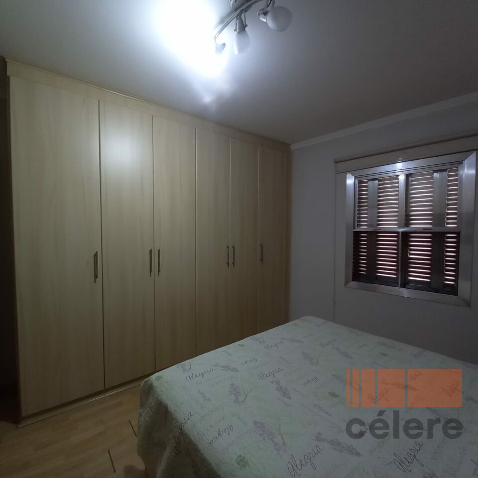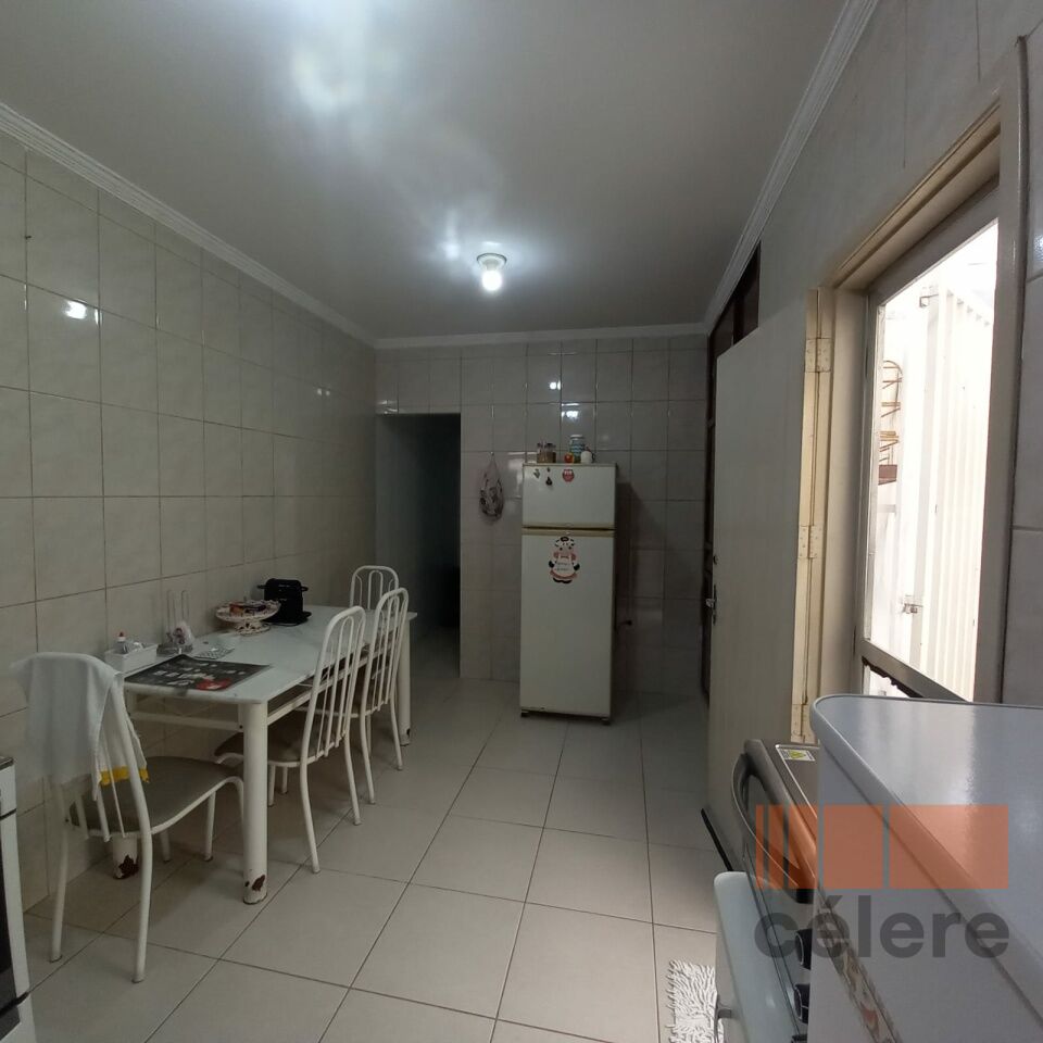 Casa térrea com um dormitório, sala, cozinha, banheiro, lavanderia, pequeno quintal e uma vaga.